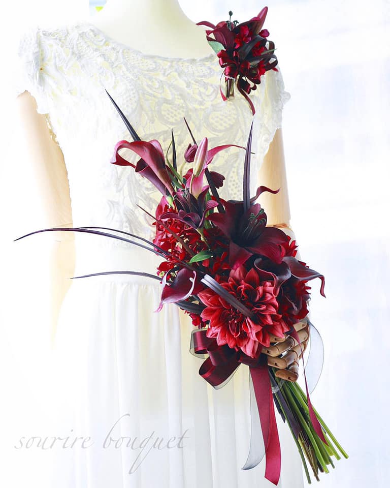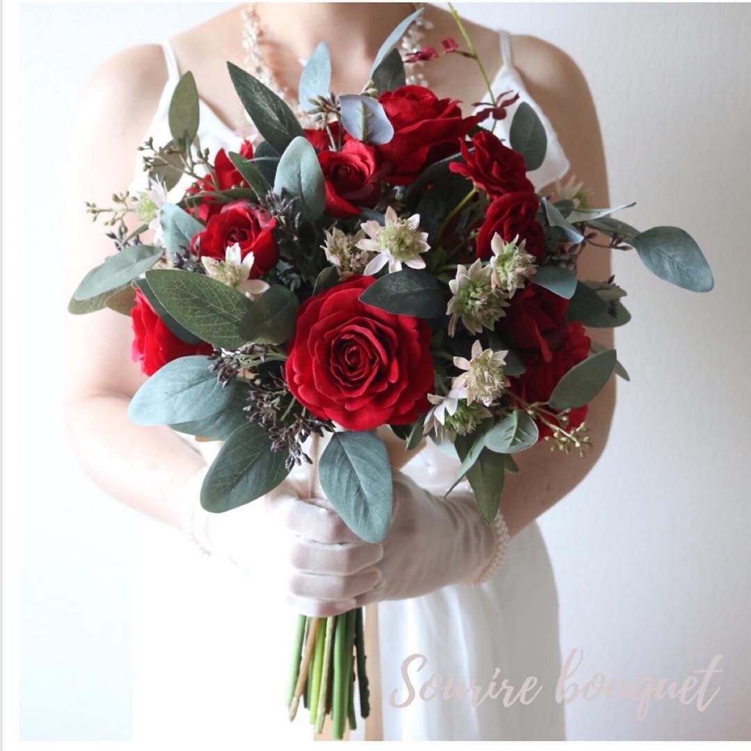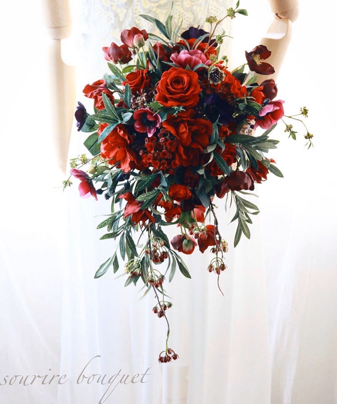 - 【c-4】深紅のバラとアストランティアの大人花嫁さまのブーケ