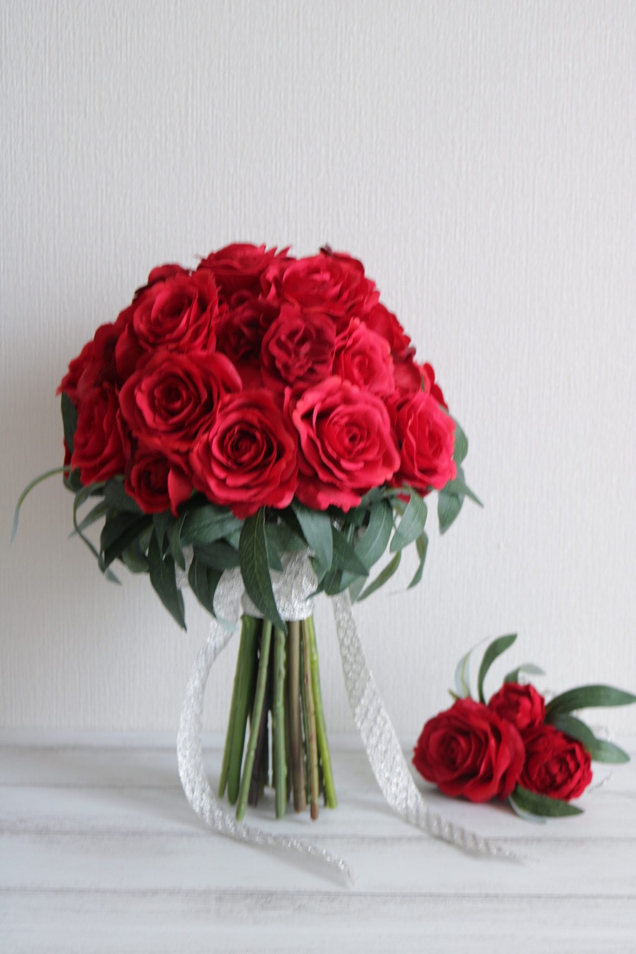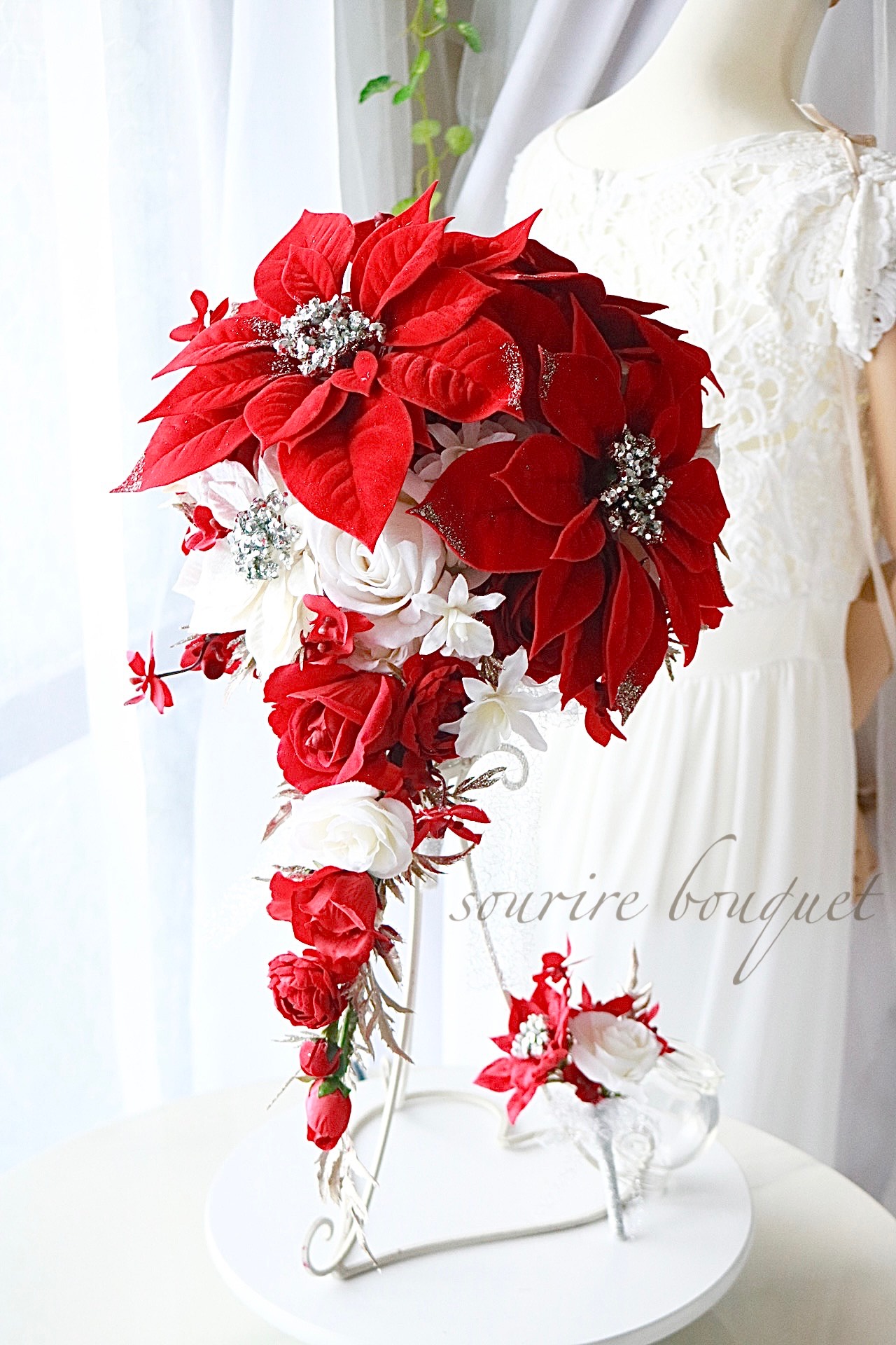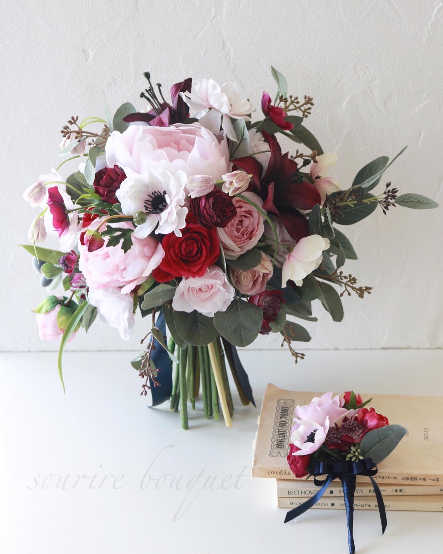 - 【c-4】深紅のバラとアストランティアの大人花嫁さまのブーケ