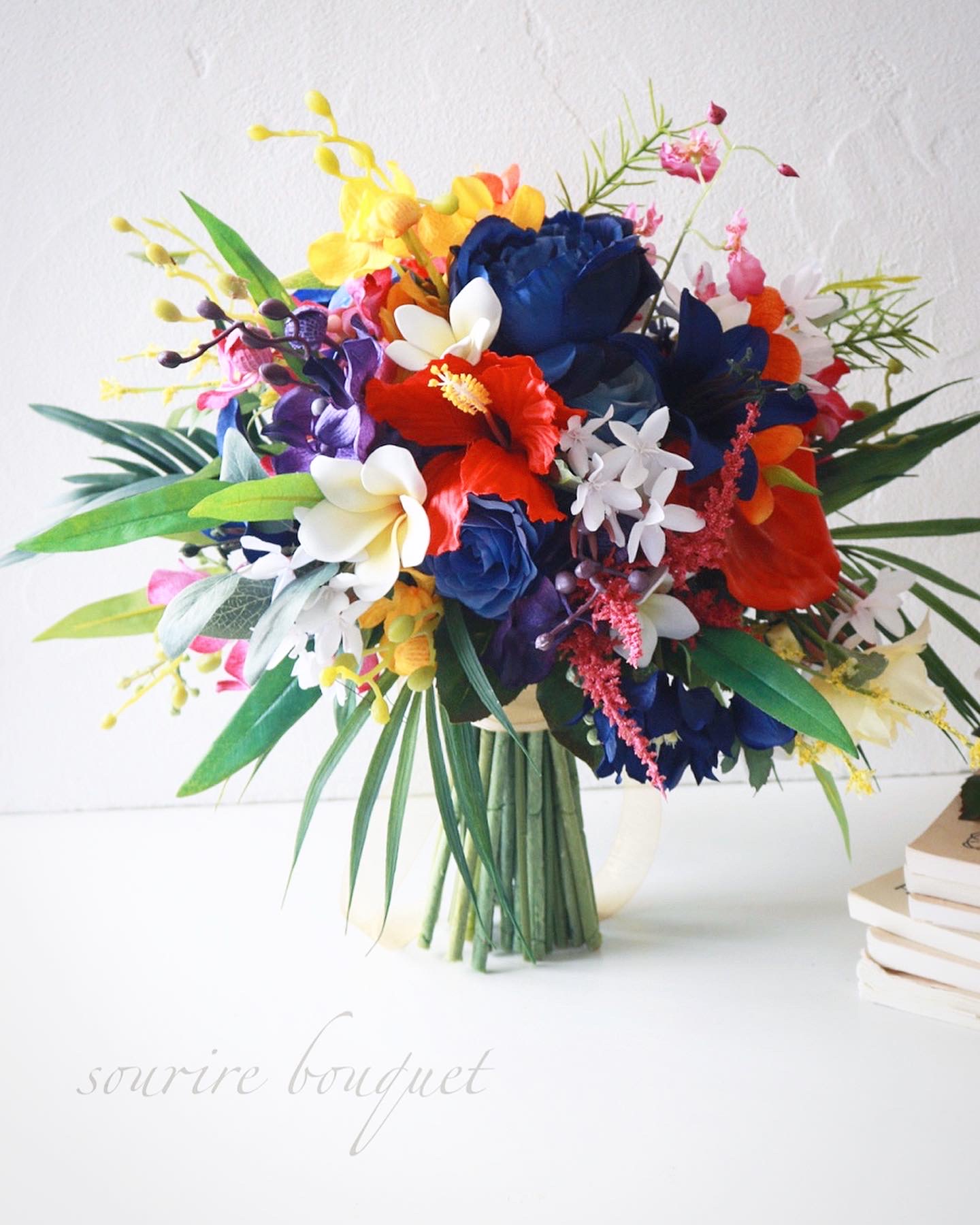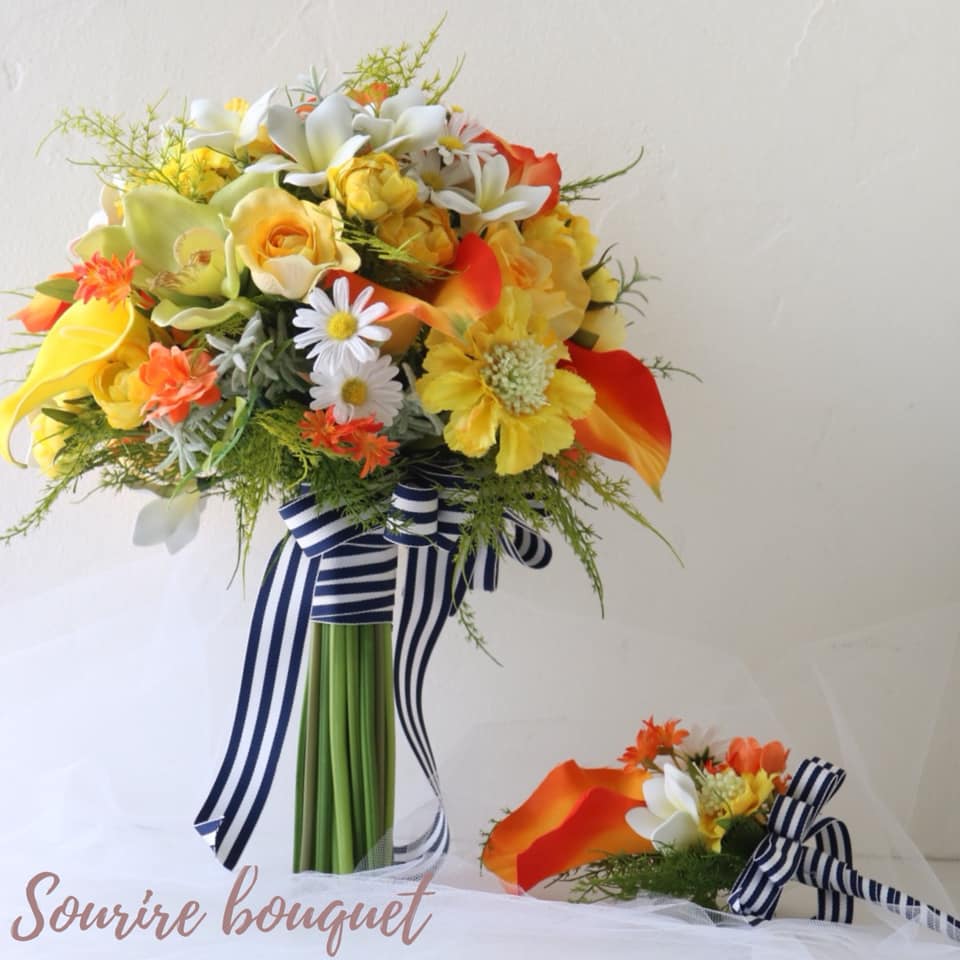 - 【c-5】黄色オレンジ、カラー、プルメリア、南国のトロピカルブーケ