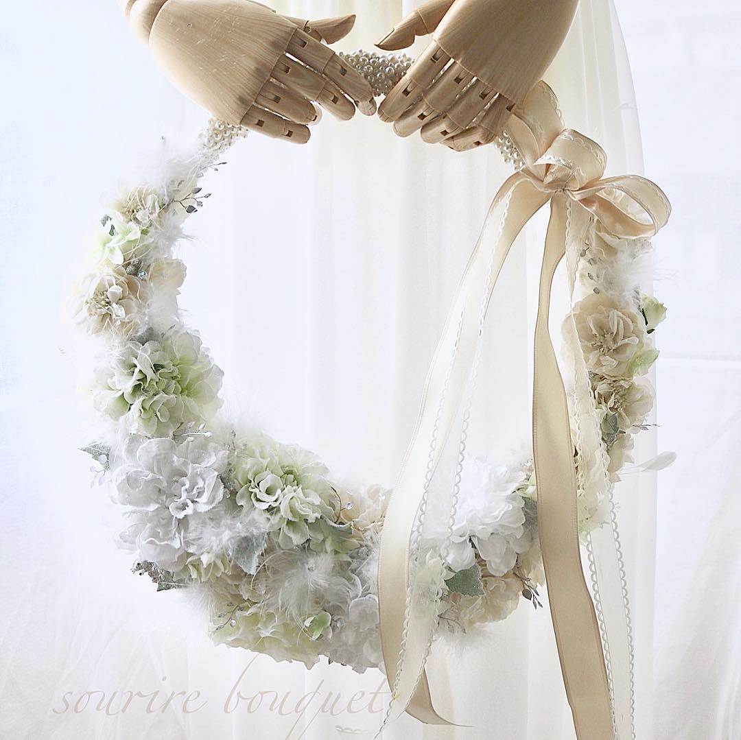 リースは、欧米でドアなどに飾る風習があり、永遠、幸運、幸福を呼び込むお守りとされているそうですよ。