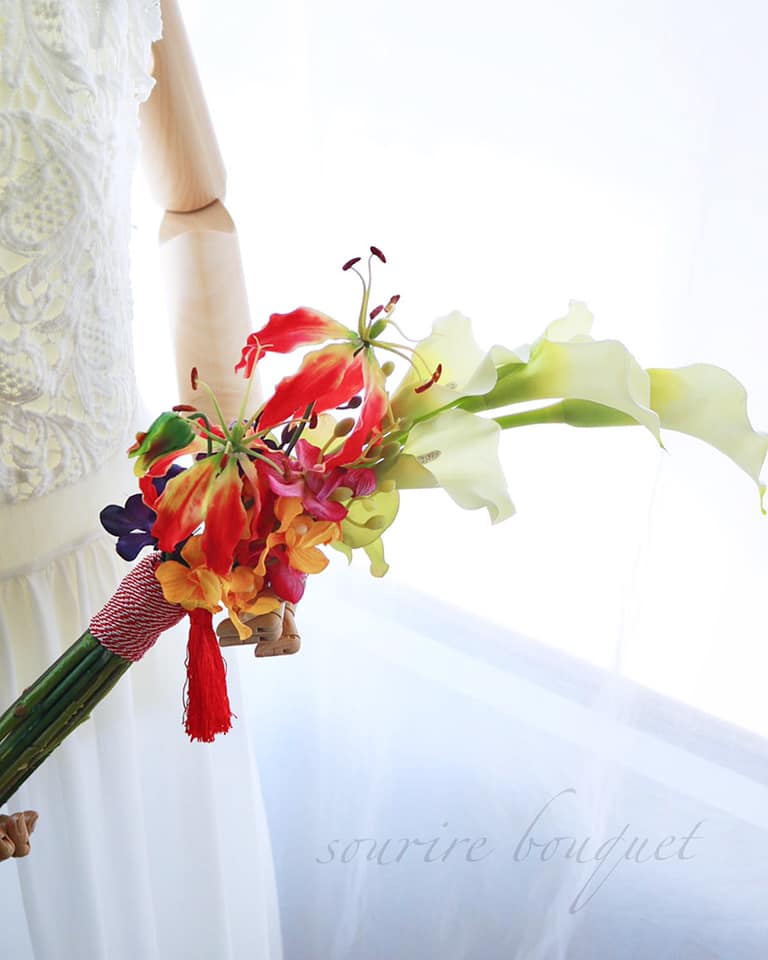 - 【j-7】カラーとグロリオサ、カラフルなブーケ