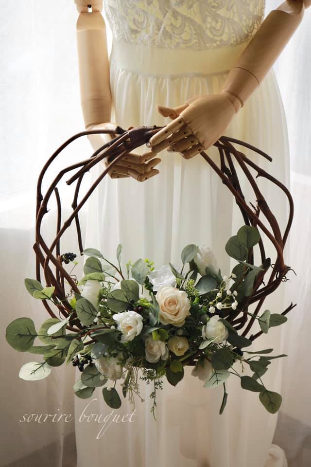 - 【c-2】スチールグラスという葉っぱを輪っかにしてアレンジしたブーケ