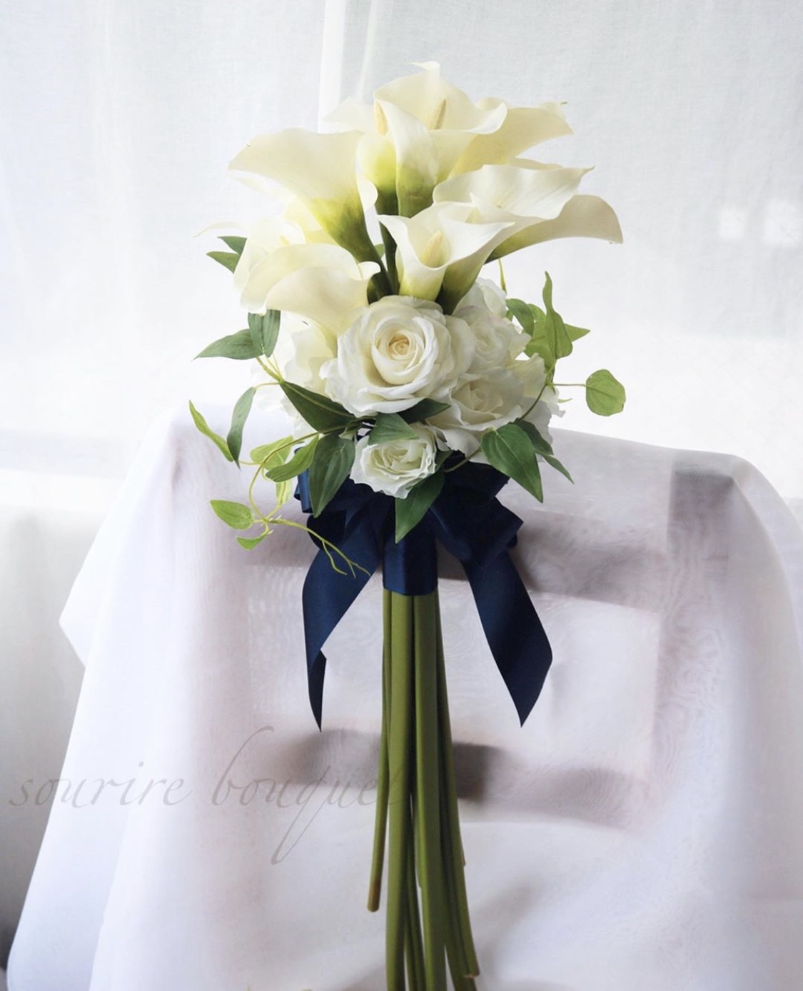 - 【c-8】白バラとカラーとミスカンサスで動きを出したブーケ