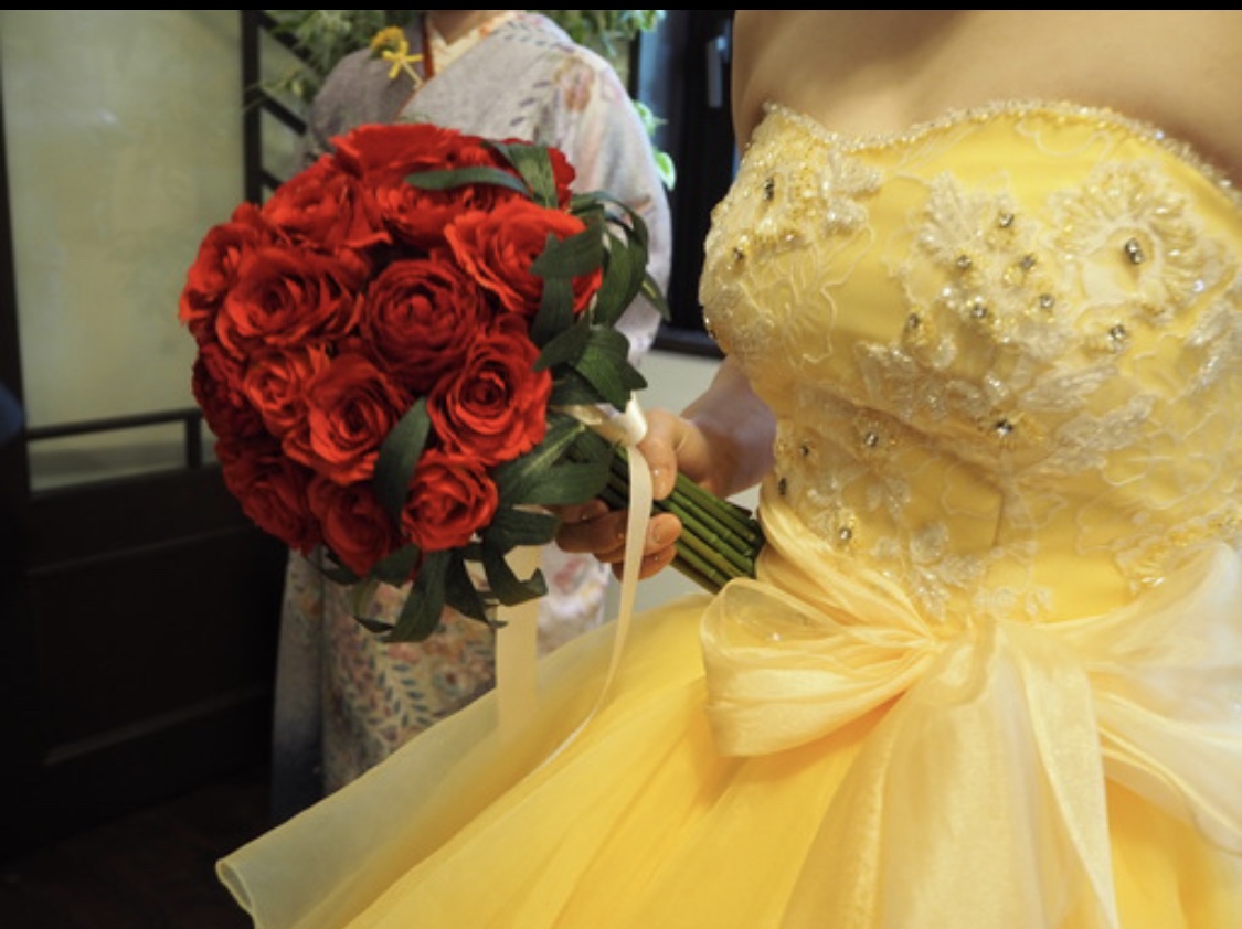 黄色・オレンジ色のドレスに合うブーケのご紹介です
