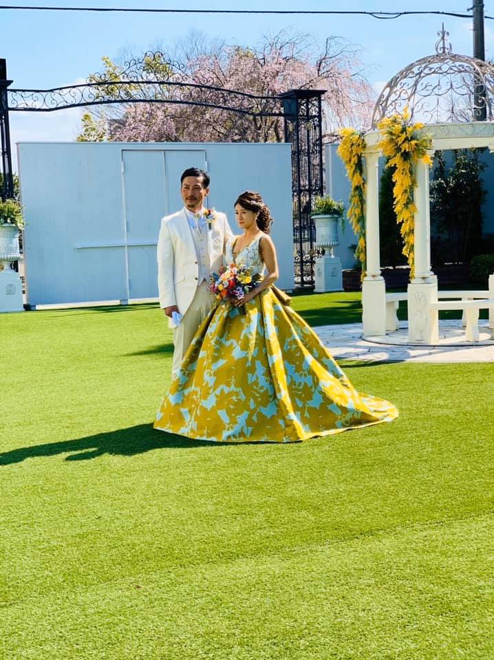 「黄・オレンジ」のドレスで、お提案させていただいたブーケ